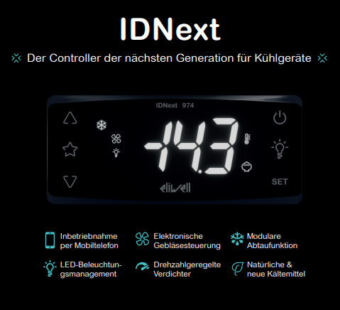 Izjemna tehnična zanesljivost krmiljenja hladilnih točk je v novem IDPlus implementirana z večjim zaslonom, barvnimi simboli in zaobljeno sprednjo ploščo; na voljo je z zaslonom v modri, jantarni in rdeči barvi ter belo, modro in temno sivo sprednjo ploščo. Novi ID ponuja tudi številne možnosti personalizacije, da izpolni zahteve in želje strank.