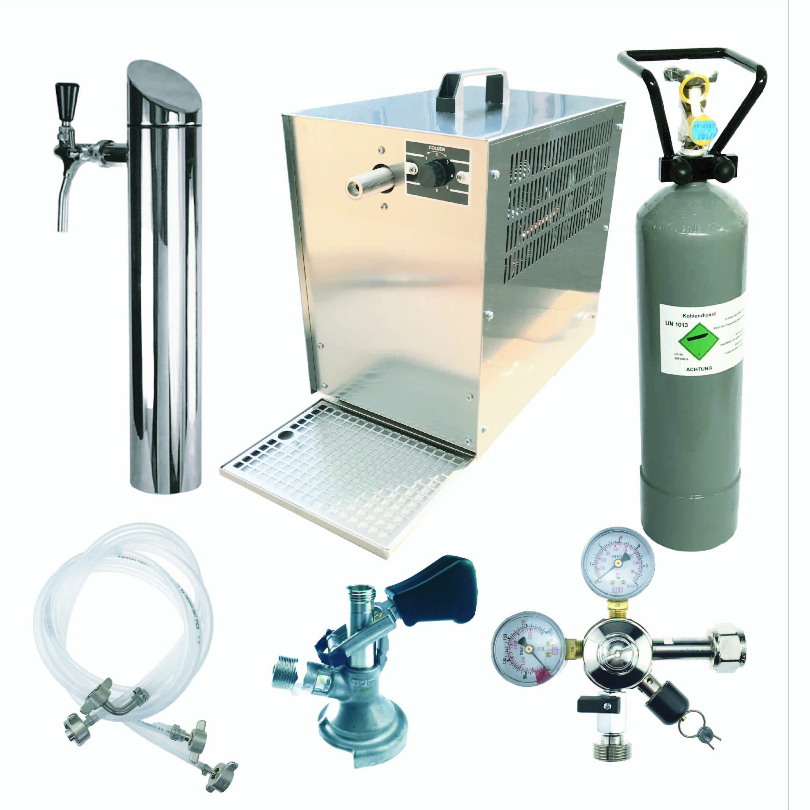 Celoten sistem za točenje piva, ki ga sestavljajo: